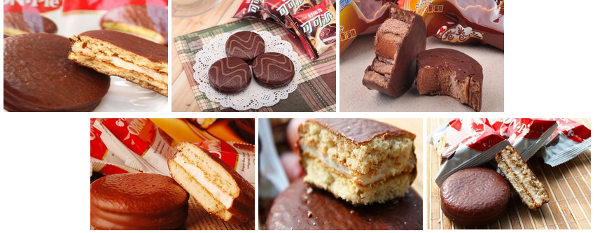 用雞蛋和面粉為主要原料,調(diào)成稠漿狀,經(jīng)過(guò)注料、焙烤、冷卻、翻餅、夾心等工序,制成噴香美味的蛋黃派、時(shí)尚派、休閑派、草莓派等系列夾心蛋糕,深受消費(fèi)者青睞。